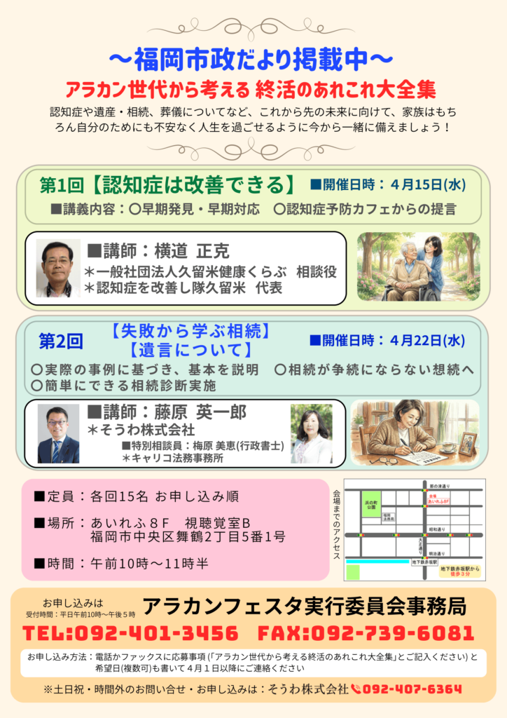 横道正克 様をお迎えし、認知症への備えや日常でできる取り組みについて、わかりやすくお話しいただきます。